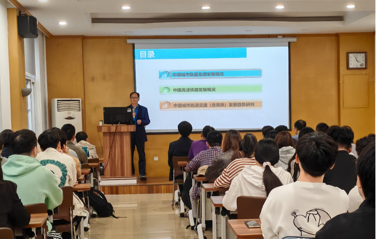 2024年4月17日南京地铁集团原总经理朱斌应邀来我校“水杉”学术讲堂作了一场题为“中国城市轨道交通现状及发展趋势”的学术报告,土木皇冠博彩网址