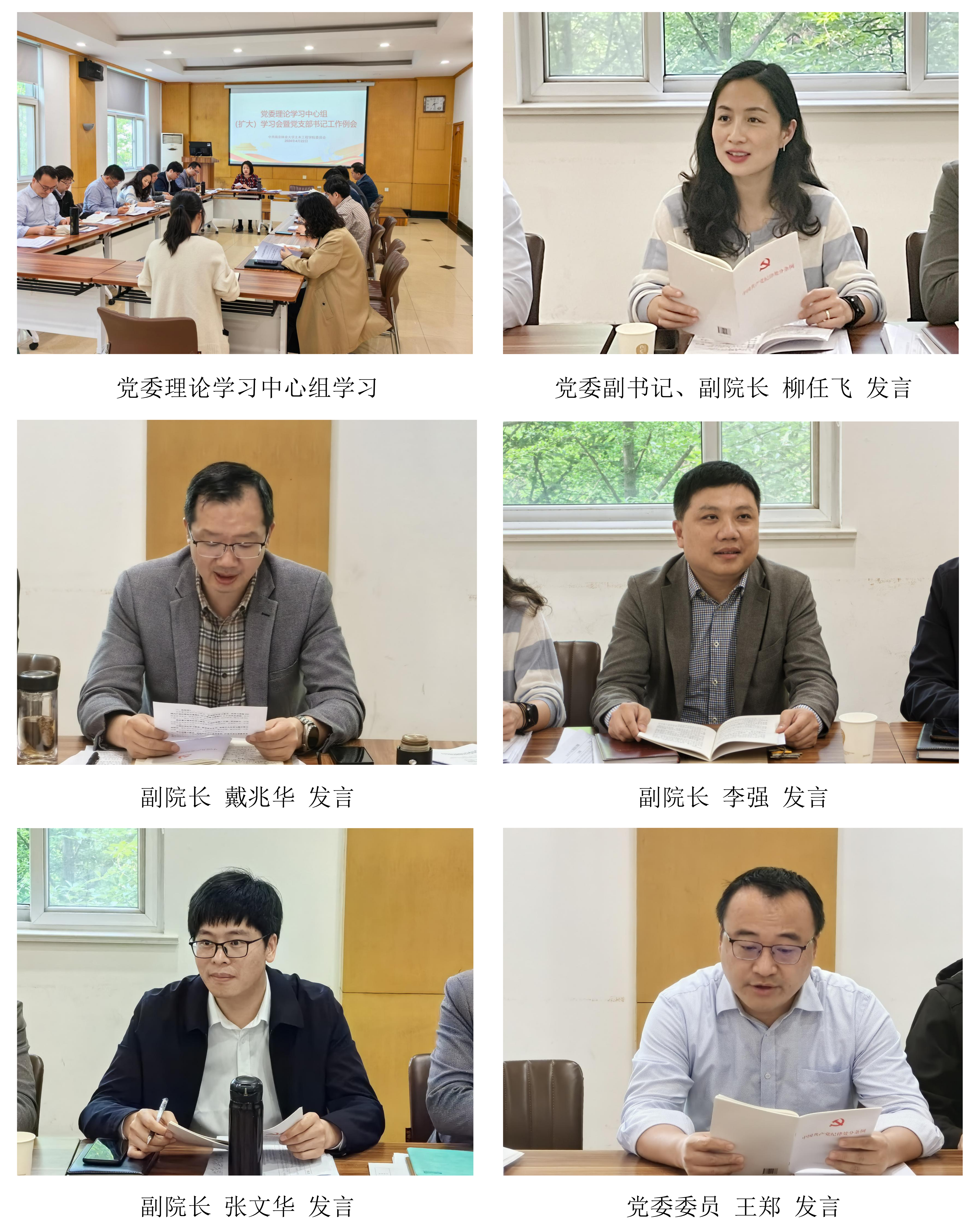 院党委副书记、副院长柳任飞,党委委员、副院长戴兆华,党委委员、副院长李强,党委委员、副院长张文华,党委委员王郑分别领学《中国共产党纪律处分条例》第一章至第五章有关内容。