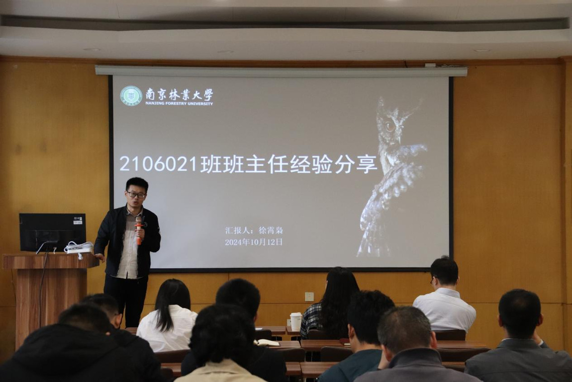 21106021班的班主任徐霄枭老师进行了经验分享。他围绕班级管理、学生学业辅导及竞赛交流等多个维度,详尽地阐述了如何以促进学生全面发展为核心目标,开展日常教育工作的策略与实践。
