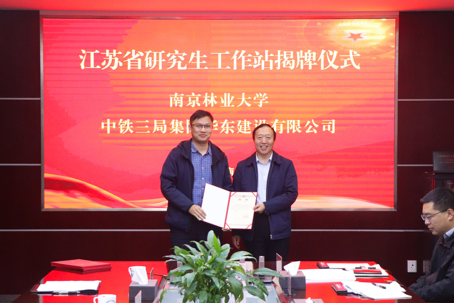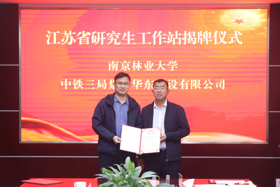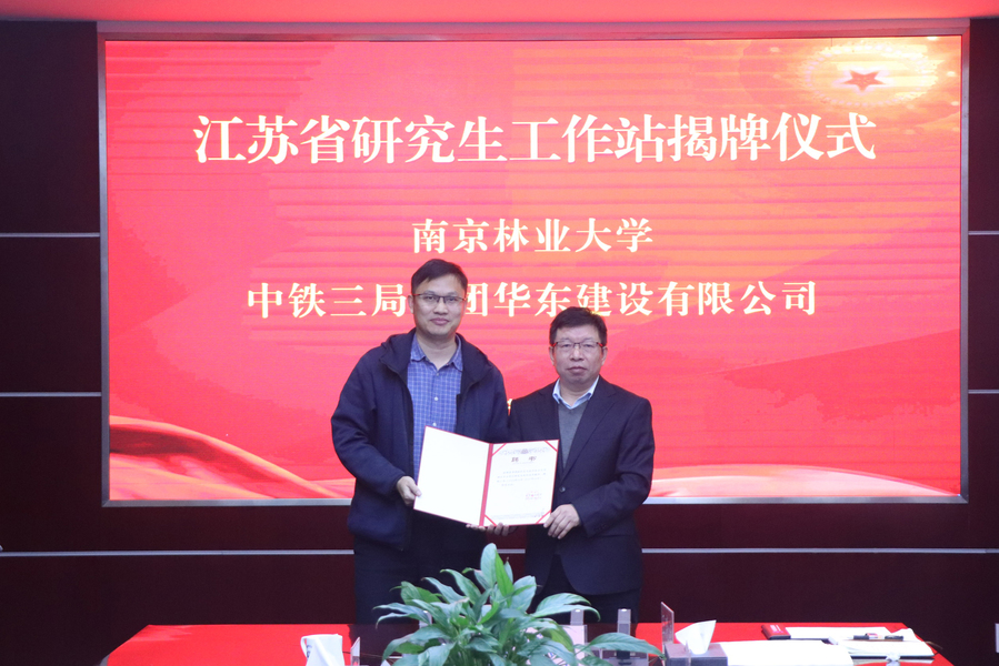 2024年11月22日,南京林业大学研究生院院长马晨波、皇冠博彩网址 院长魏洋、学科带头人杨平教授、建筑工程系主任张延泰及张婷、王加辉老师一行前往中铁三局集团华东建设有限公司举行江苏省研究生工作站揭牌仪式。