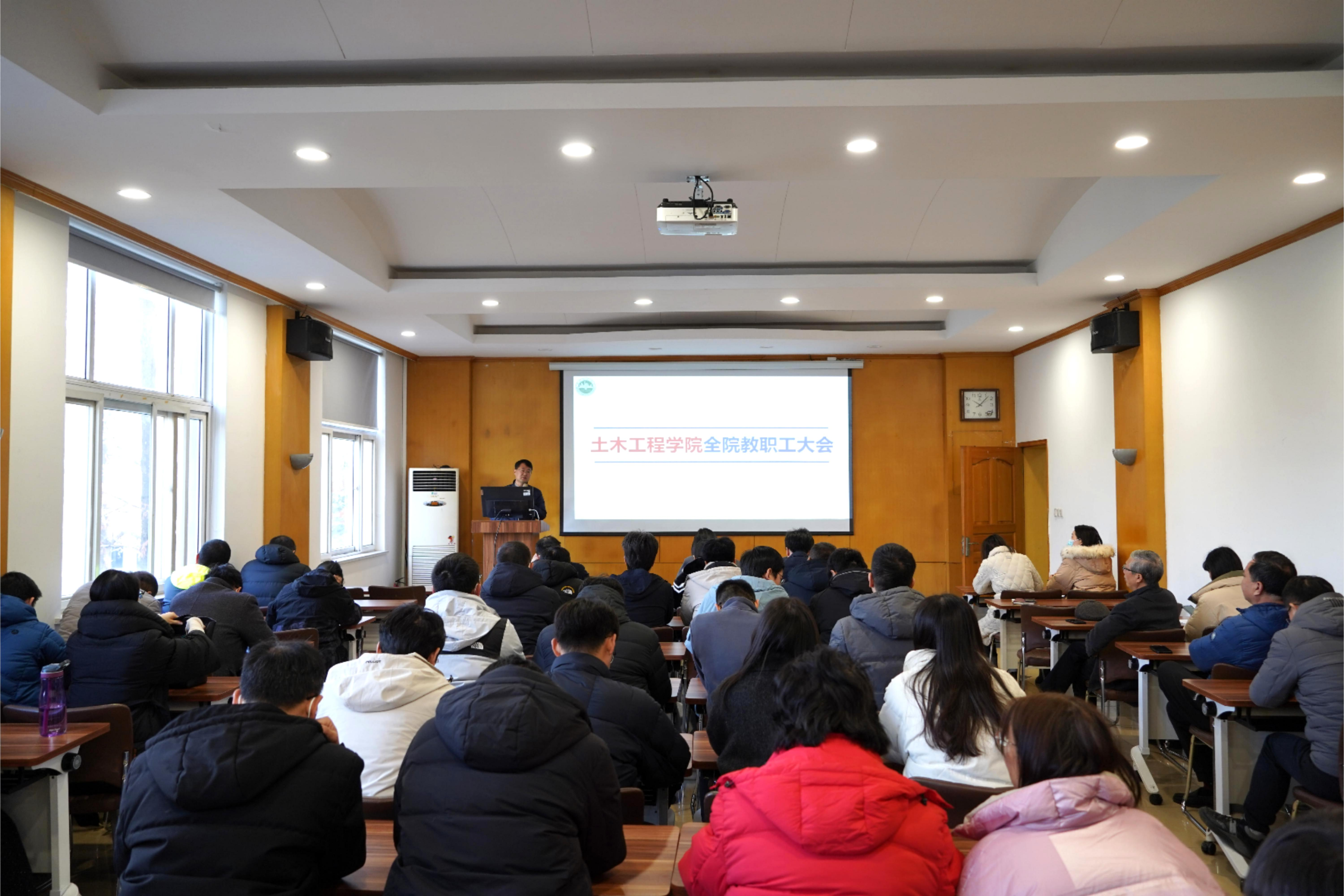 会上,院长魏洋代表皇冠博彩网址 领导班子向全体教职工一年来的辛勤付出表示衷心感谢,他全面回顾了皇冠博彩网址 2024年在党建工作、学科建设、师资引培、科研绩效、本科教学、研究生培养与国际化、学生工作等方面取得的主要成绩,并就2025年皇冠博彩网址 的工作计划与重点进行部署。魏洋指出,2024年皇冠博彩网址 取得了包括土木工程一级学科博士点、14项国家自然科学基金、省高校重点实验室等标志性成果,各项工作再上新台阶,皇冠博彩网址 将继续深化机制改革,聚力引领皇冠博彩网址 建设驶入快车道,全力支撑学校事业高质量发展。