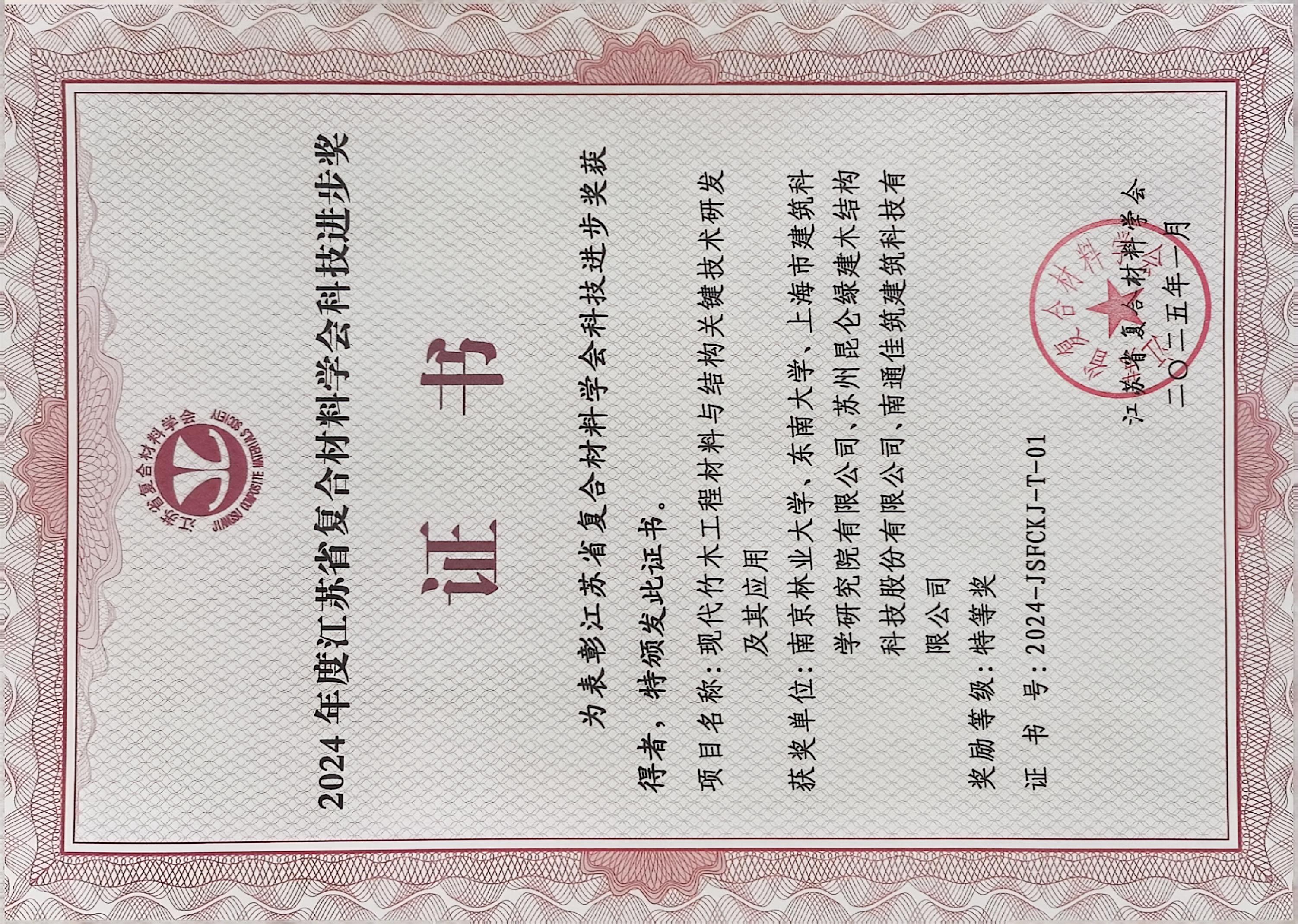 2025年1月19日上午,江苏省复合材料学会七届二次理事会在南京航空航天大学召开,皇冠博彩网址 魏洋教授牵头,陈佳炜、杜浩、丁一等老师参与完成的《现代竹木工程材料与结构关键技术研发及其应用》荣获2024年度江苏省复合材料学会科技进步特等奖。