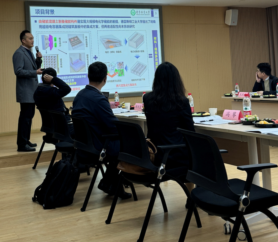 作为项目重要参与单位,南京林业大学承担了“混凝土电芯-模组-构件多尺度集成与结构储能性能优化”课题的研究工作。在实施方案论证环节,课题负责人褚洪岩副教授系统汇报了基于土木工程材料学科特色的技术攻关路径、针对储能混凝土电芯通过串并联形式构成模组的基础原理以及模组-构件集成中结构稳定性与储能功能协同的核心挑战,形成了混凝土电芯-模组-构件多尺度集成与结构储能性能优化技术体系,为项目提供关键技术支撑。汇报内容获得缪昌文院士、刘加平院士等专家高度认可,认为该课题设计紧扣“结构-功能一体化”前沿方向,具有显著工程应用价值。