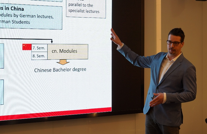 在交流讨论环节,双方围绕双学位联合培养等合作项目进行了深入探讨。就学制安排、学费标准、奖学金设置、课程认证、专业选择流程以及德语水平要求等具体问题展开了细致交流。双方在合作细节上达成广泛共识,包括建立学生交换机制、开展教师互访、共同申请科研项目等,为后续实质性合作奠定了坚实基础。