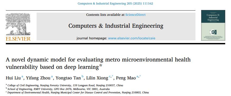 近日,皇冠博彩网址 毛鹏教授团队在工程技术领域国际知名期刊《Computers & Industrial Engineering》(中科院Top期刊,影响因子6.7)上发表了题为“A novel dynamic model for evaluating metro microenvironmental health vulnerability based on deep learning”的研究成果。皇冠博彩网址 博士研究生刘慧为第一作者,硕士研究生周逸芳为第二作者,毛鹏教授为通讯作者。我校为本研究的第一完成单位,该成果获得了国家自然科学基金项目的资助。