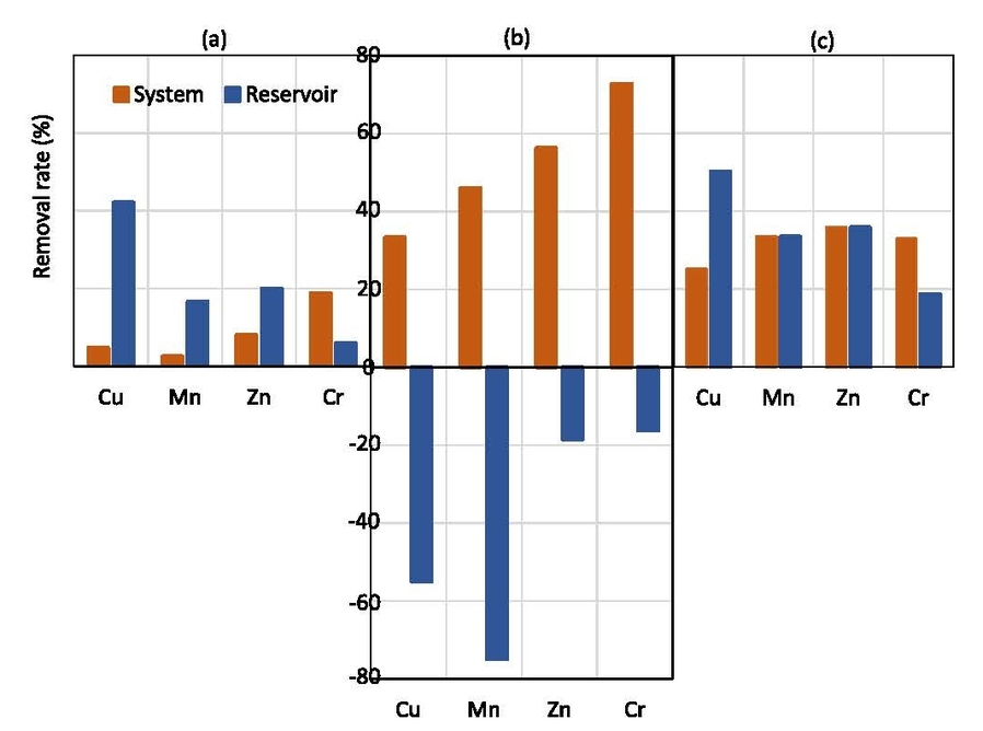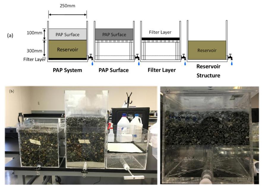 研究通过实验室模拟极端气候事件,测试了PAP系统及其各层材料对雨水径流中四种重金属的去除效果。