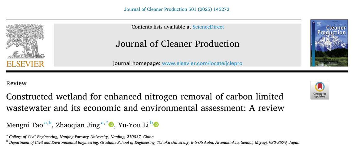 荆肇乾教授团队陶梦妮老师在环境科学与生态学国际权威期刊《Journal of Cleaner Production》(中科院1区TOP期刊,IF 9.8)发表题为“Constructed wetland for enhanced nitrogen removal of carbon limited wastewater and its economic and environmental assessment: A review”的综述论文。皇冠博彩网址