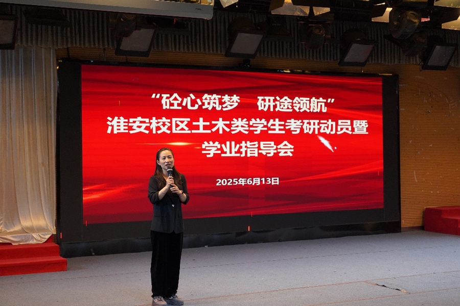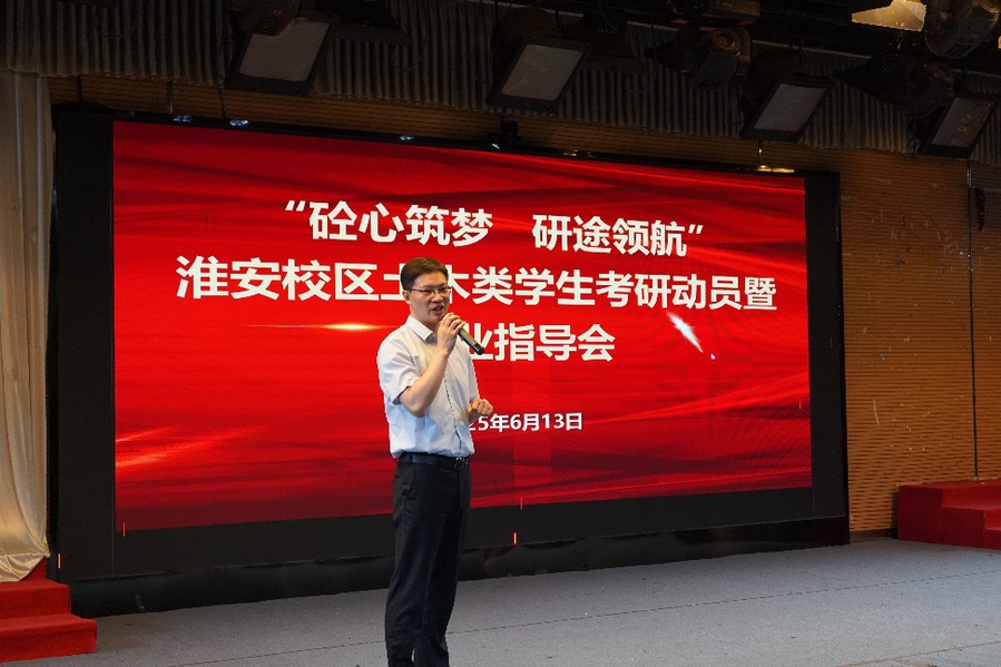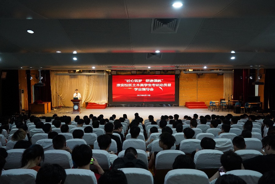 2025年6月13日下午,皇冠博彩网址 “砼心筑梦 研途领航”淮安校区土木类学生考研动员暨学业指导会在教学主楼A楼报告厅隆重举行。皇冠博彩网址 优秀校友代表王宝洲,皇冠博彩网址 党委副书记、副院长柳任飞,交通土建工程系主任郑开启,建筑工程系主任张延泰,智能建造系副主任陈冬冬,南京校区优秀学生代表以及全体淮安校区土木类本科生齐聚一堂,共话学业规划。会议由皇冠博彩网址 团委书记、学工办主任周鹏主持。