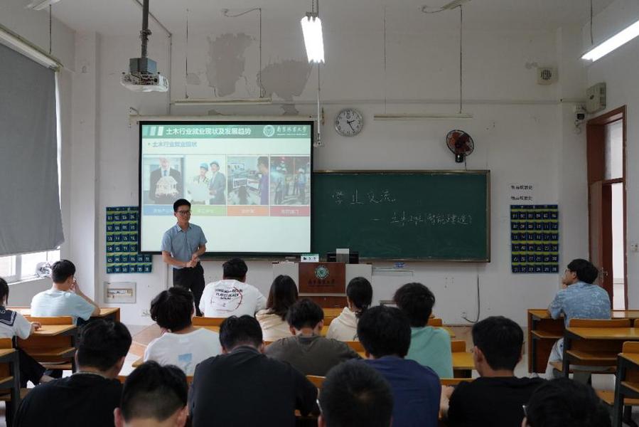 智能建造系副主任陈冬冬老师则以土木工程行业就业现状与发展趋势为背景,阐释了智能建造作为行业数字化转型战略方向的核心价值——通过打破学科壁垒、融合信息技术,重塑建筑业未来。他强调,智能建造专业既能夯实工程基础,又具备高成长性职业前景,为同学们的专业选择与发展提供了新视角。