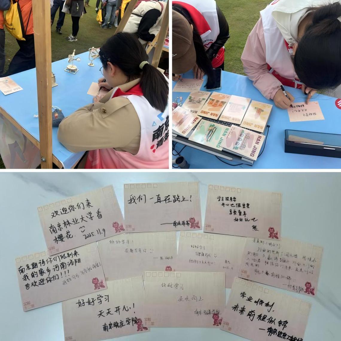 除了参与嘉年华的孩子们,多名来参与展演的其他学校的团队志愿者也积极参与其中。“好好学习,天天向上”“学业顺利、未来前程似锦”“好好学习!在南京等你”……一个个美好的祝愿从南京各个高校传来汇聚于南京林业大学小小的摊位上,未来,团队也将与他们的热情与温暖共同前往支教地。