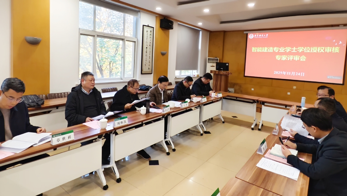 2025年11月24日下午南京林业大学智能建造专业学士学位授权审核专家评审会在皇冠博彩网址 报告厅举行,东南大学皇冠博彩网址 郭正兴教授、南京航空航天大学民航皇冠博彩网址 吴瑾教授、河海大学土木与交通皇冠博彩网址 周继凯教授、南京工业大学皇冠博彩网址 副院长岳健广教授、江苏华通工程技术有限公司总经理章世祥研究员级高工、南京中建八局智慧科技有限公司总经理叶嵩高级工程师应邀担任评审专家。南京林业大学教学评估办公室主任、高教所所长周统建,皇冠博彩网址 院长魏洋、副院长戴兆华、智能建造系主任丁明珉、副主任陈冬冬以及智能建造系教师代表参加了本次会议,会议由戴兆华副院长主持。