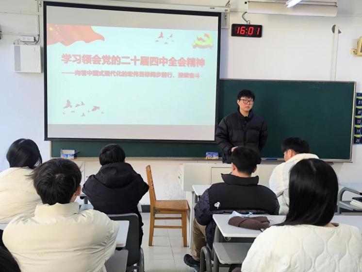 11月26日下午,皇冠博彩网址 团委书记周鹏在教五楼50521教室面向普通团员和青年开展党的二十届四中全会精神专题宣讲。宣讲中,周鹏以“把握历史方位 践行青春担当”为主线,系统解读全会精神的时代背景与实践要求:从“乘势而上”的历史逻辑,到“团结奋斗”的时代号召,再到青年一代在推进中国式现代化中的使命责任。他结合土木工程学科在国家基建中的重要作用,鼓励团员青年“做有理想、敢担当、能吃苦、肯奋斗的新时代好青年”,在专业学习中深耕细作,在社会实践中锤炼品格。
