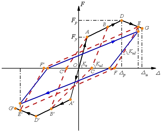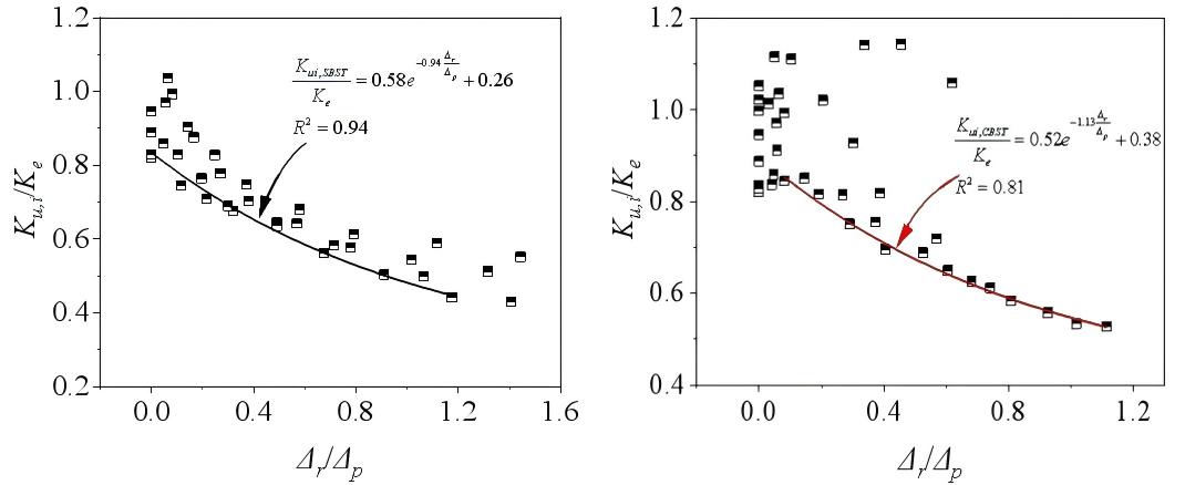 研究结果表明,BSTs破坏形态主要表现为竹材撕裂与钢管屈曲。增大钢管壁厚可有效抑制竹柱开裂与局部屈曲,显著延缓刚度衰减。试件极限承载力随轴压比增加而提高,但会加速损伤演化,使延性降低约10%,并显著削弱能量耗散与滞回性能。基于Takeda三折线恢复力模型构建了BSTs在横向循环荷载作用下的P–Δ恢复力模型。