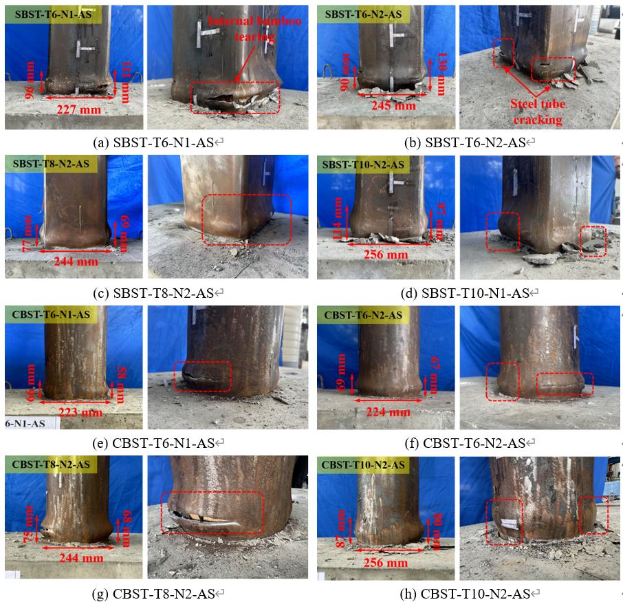 图2 钢管约束竹组合柱(BSTs)破坏形态