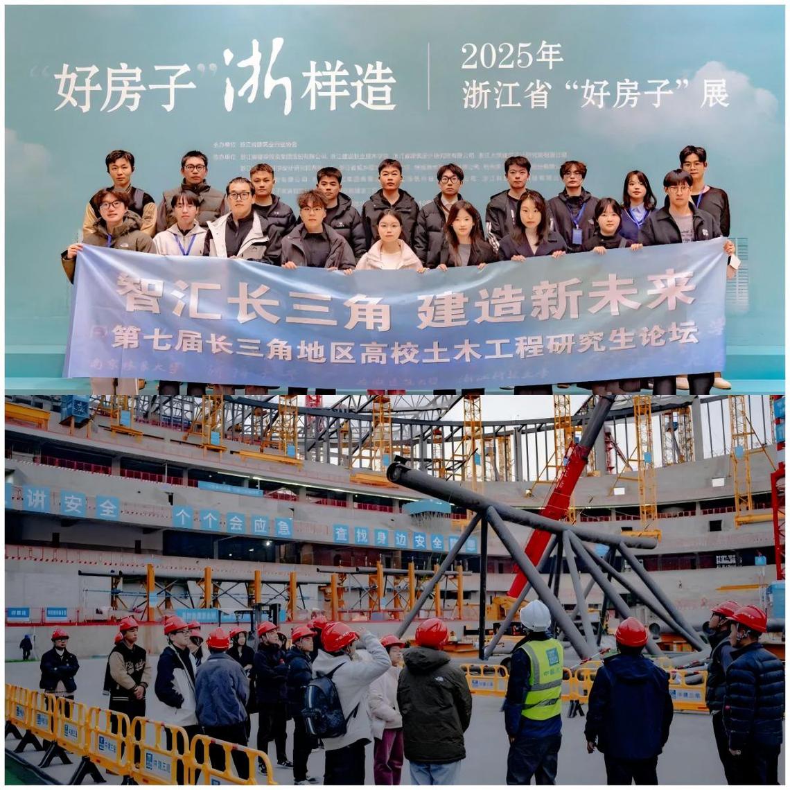 为深化与长三角地区高校在土木工程领域的学术交流,拓宽研究生科研视野、激发创新思维,12月6日-7日,皇冠博彩网址 研究生张静茹、姚美希应邀参加第七届长三角高校土木工程研究生学术论坛。本次论坛在浙江工业大学举办,论坛以“智汇长三角,建造新未来”为主题,吸引了来自同济大学、上海交通大学、东南大学、南京林业大学等15所高校师生代表参加。