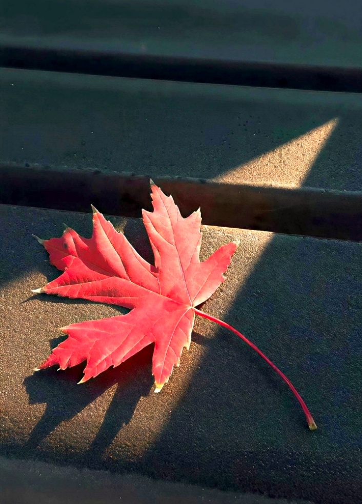 以枫叶为画面主体,用切割整齐的光线高亮,镜头感强烈。