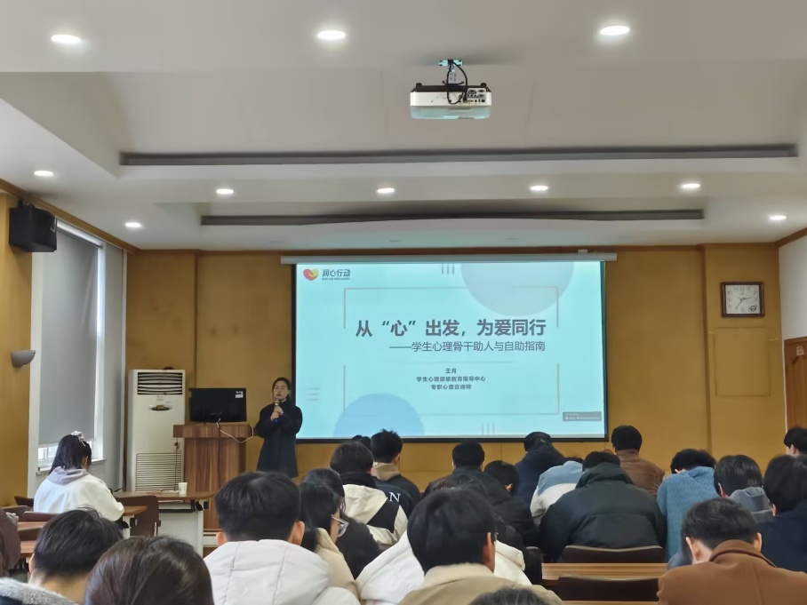 为提高皇冠博彩网址 心理健康教育水平,提升学生骨干心理健康工作技能,2025年12月19日,皇冠博彩网址 邀请我校心理中心专职咨询师王月老师于林机楼3324报告厅开展心理健康知识辅导讲座,皇冠博彩网址 各年级班级心理委员及学生会心协成员到场参加。