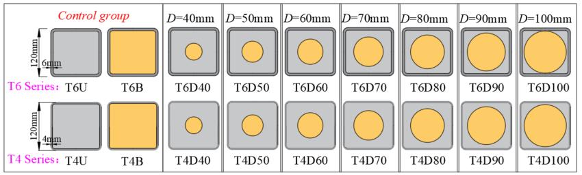 魏洋课题组已开展了系列内置重组竹的钢管UHPC组合柱结构性能及受力机理研究,本研究设计了42个内置圆形重组竹的方形钢管UHPC组合柱、6个方形钢管重组竹柱(BFST)对比试件、6个方形钢管UHPC柱(UFST)对比试件,开展了全截面单调轴压性能测试。重点考察截面含重组竹率、截面含钢率等主要参数对CBUFST的破坏形式、初始刚度、荷载-应变曲线形态、峰后延性等关键受压性能指标的影响,并揭示重组竹、UHPC和钢管的协同受压机制。