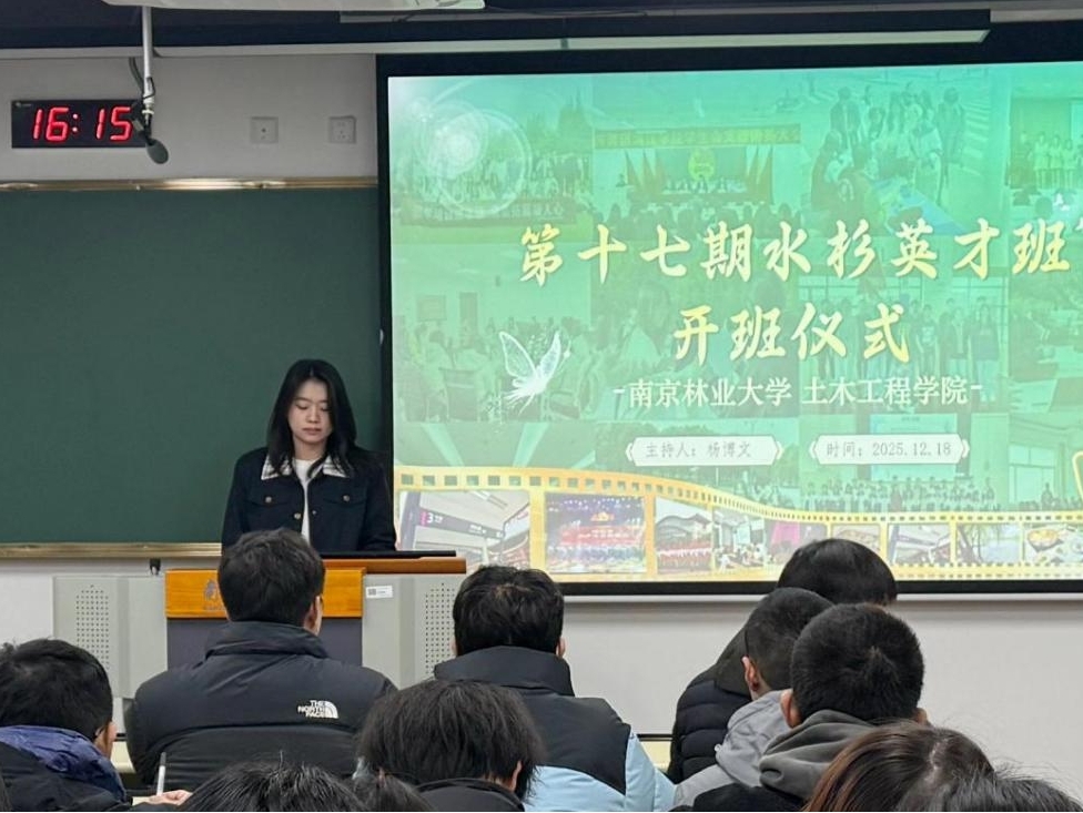 秘书处部长杨博文详细介绍了水杉英才班的定位与课程安排。作为“青马工程”校本化特色载体,英才班以水杉“坚韧、挺拔、向上、向善”精神为核心标识,兼具政治引领、能力培养与文化传承价值。本期课程拟通过党的二十届四中全会精神专题学习、校园戏剧美育浸润、志愿经验主题分享、“遇筷搭桥”趣味实践等多元形式,以理论武装强化政治站位,以实践活动锤炼组织、创新与服务能力,全面提升学员的思想觉悟与行动自觉。