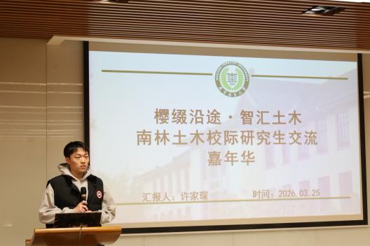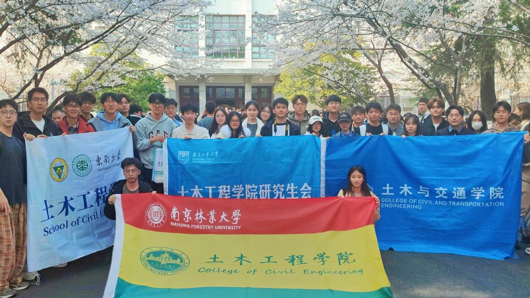 春染南林,樱缀研途。2026年3月25日至27日,正值南京林业大学樱花盛放之际,皇冠博彩网址 研究生会、本科学生会在皇冠博彩网址 团委指导下,以“樱缀研途·智汇土木”为主题,成功举办校际研究生学术交流暨研本学生会工作分享活动。本次活动邀请东南大学、河海大学、南京工业大学、陆军工程大学研究生会代表、党建工作室代表,以及同济大学、华南师范大学土木工程相关专业学生齐聚南林,搭建起校际研究生交流互鉴的桥梁,共话学术成长,同谱发展新篇。
